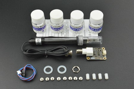 With this product, main control board (such as Arduino) and the software library, you can quickly build an electrical conductivity meter, plug and play, no welding. DFRobot provides a variety of water quality sensor products, uniform size and interface, not only meet the needs of various water quality testing, but also suitable for the DIY of multi-parameter water quality tester.