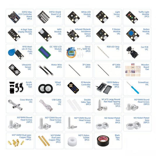 Many kits expose standard GPIO/I²C/UART interfaces and can be extended with Arduino, micro:bit, or Raspberry Pi accessories depending on the kit.