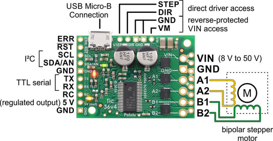 Tic 36v4 USB Multi-Interface High-Power Stepper Motor Controller (Connectors Soldered)
