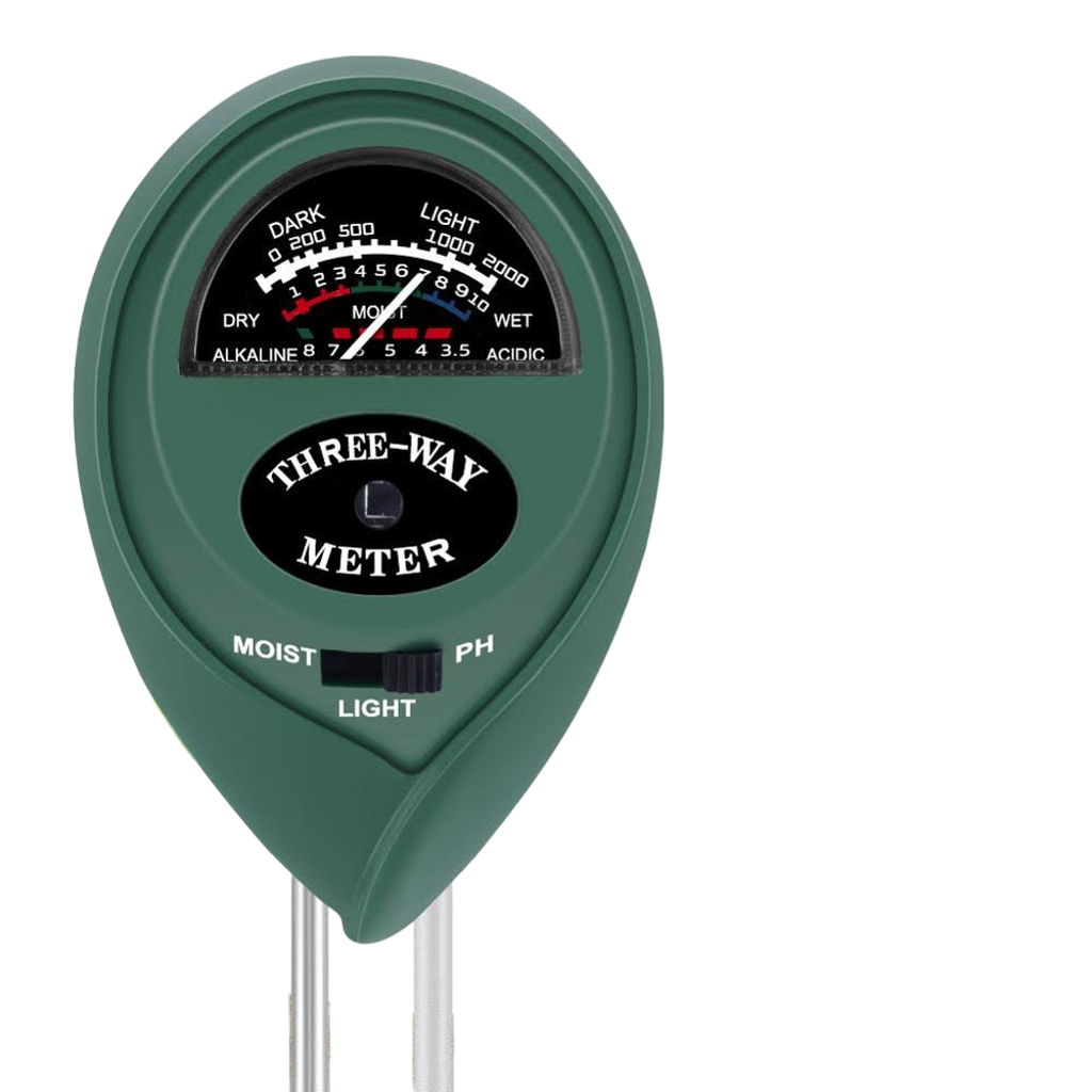 Simply insert the meter into the soil, switch to the setting you want to measure, and read the scale.