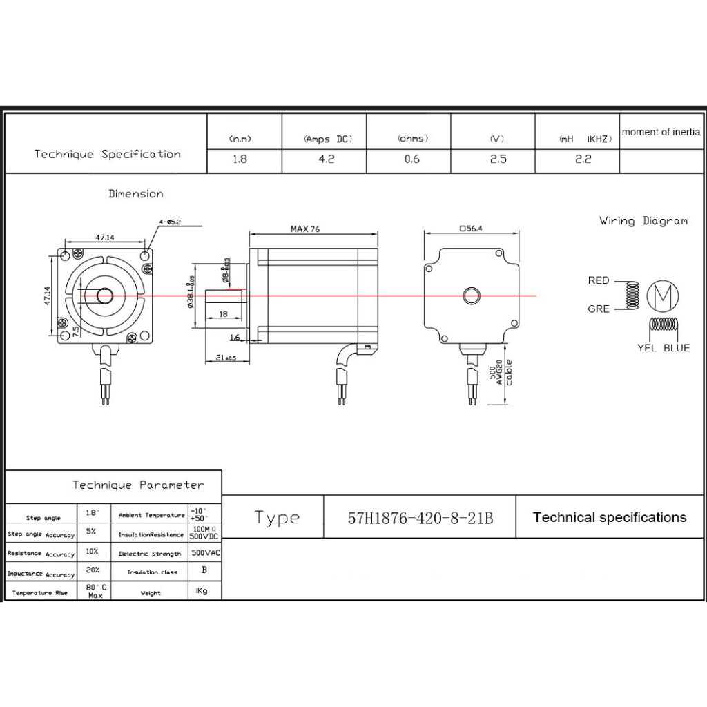 57BYGH76 NEMA 23 Bipolar Stepper Motor 76mm 4.2A 1.8Nm