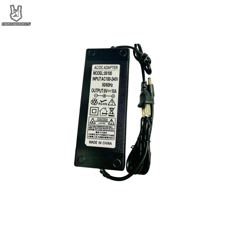 This is a beefy switching supply, for when you need a lot of power! It can supply 5V DC up to 10 Amps, running from 110V or 220V power (the plug it comes with is for US/Canada/Japan but you can use any plug adapter for your country, or just replace the cable with a standard figure-8 cable)
