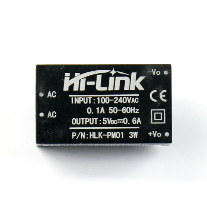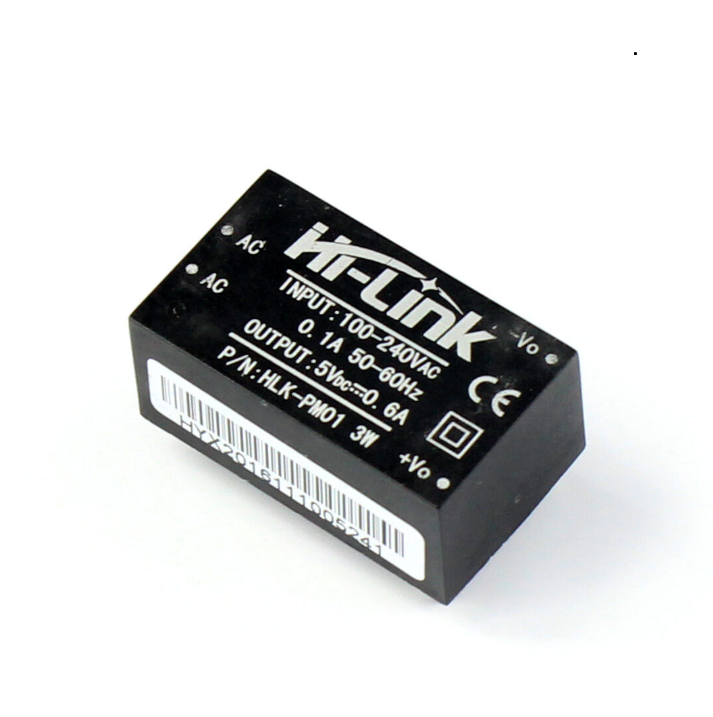 The HLK-PM01 is a isolated power supply module with input range of 100 volt to 240 volt AC and output of DC 5 volt and power rating of 2 watt. Its ultra compact size makes it perfect to use in places where size is a constraint. It is a compact PCB mountable plastic enclosed power supply module. It replaces lots of parts from the traditional power supply like diodes, voltage regulator, transformer. There are many advantage of these modules, such as: Global input voltage range, low temperature rise, low power, high efficiency, high reliability, high security isolation, etc. It has been widely used in smart home, automation and control, communications equipment, instrumentation And other industries, when applied to electromagnetic compatibility relatively harsh environment.