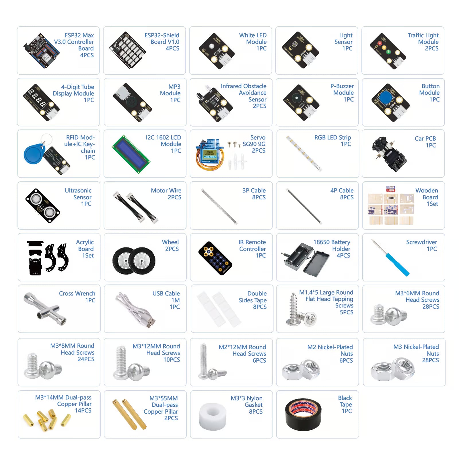 - 4 × ESP32 Controller Boards