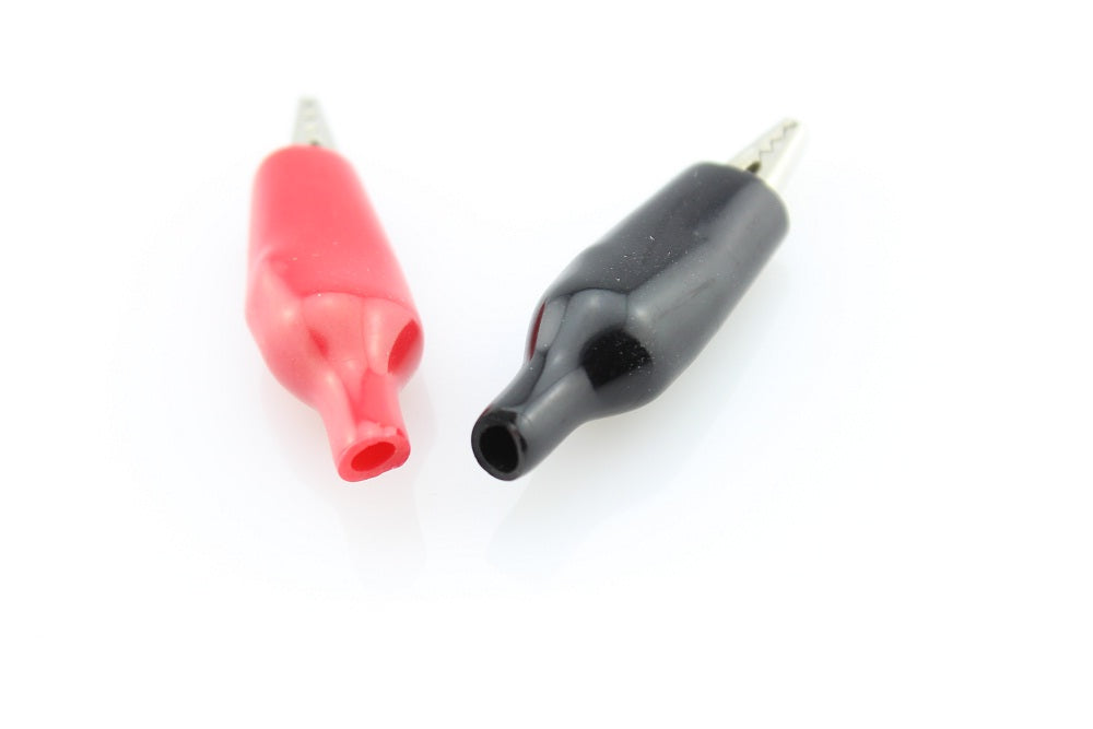 Connect this to that without soldering using these handy mini alligator clip test leads. You get 1 pair. Strong and grippy, these always come in handy! We often use these in conjunction with a multimeter so we don't have to hold the probes in place.