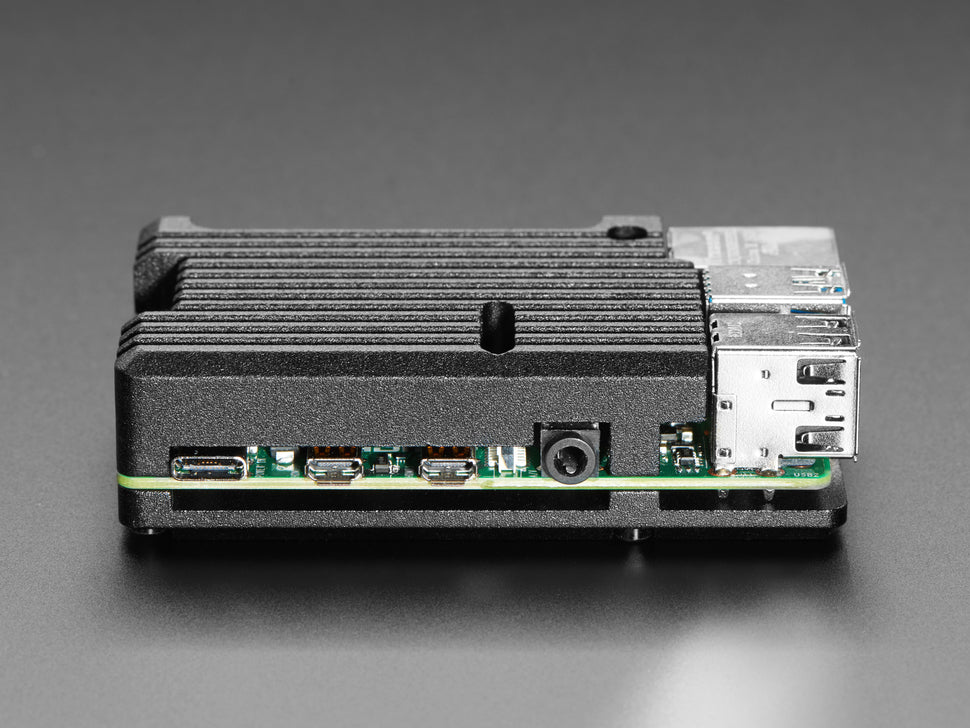 Constructed from solid anodized aluminum, it's got nice heft. It has slim openings for all your cables, slots for your Pi Camera and other peripherals, and a space for a GPIO cable to extend out from the Pi. The body acts as a heatsink for the main chip.