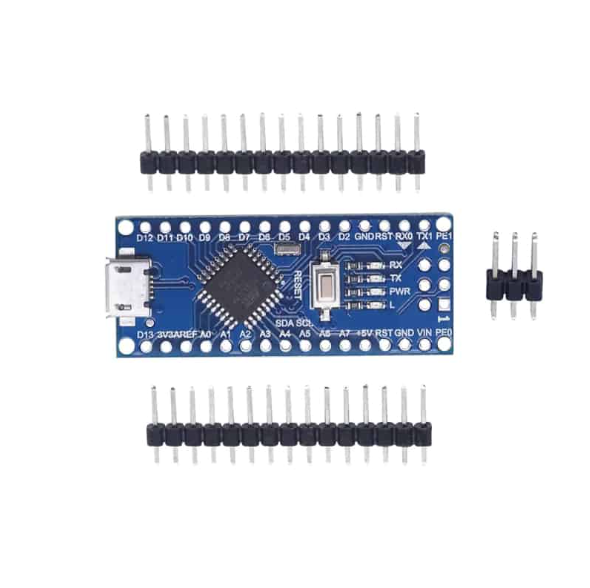 Nano CH340 ATmega328 Unsoldered Arduino Compatible - Do you ever need an Arduino Nano to fit in your custom PCB setup? This Arduino Nano solves that problem since it has unsoldered header pins. The advantage of this is that you can attach your Arduino Nano in a much lower profile. It works with a Mini-B USB cable.