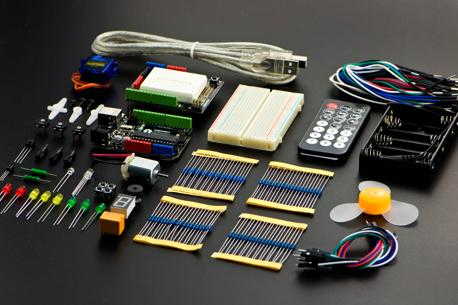 Likewise, the beginner Arduino kit is particularly designed to guide users through how to manage and control the physical world through sensors and microcontrollers. It also takes care of starters’ necessities in terms of technical knowledge concerning Arduino projects. Moreover, the Arduino Beginner Kit brings jumper wires of superior quality, a number of LEDs, double resistors, IR remote transmitters/receivers, 9g servos, and 4 additional elements (fan, relay, potentiometer, and motor.
