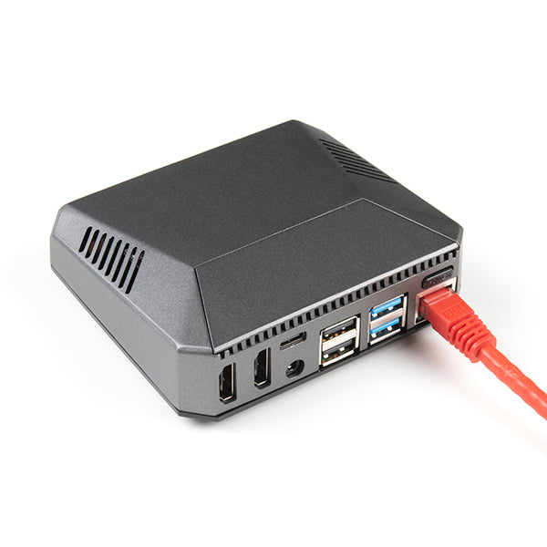 If you're looking for a fully-featured Raspberry Pi 4 case, then look no further than the Argon ONE Pi 4 Raspberry Pi Case. In addition to providing passive and active cooling to keep the Pi 4 running cool, it incorporates multiple pieces to allow for access to different levels of the board like a magnetic dedicated door for the 40 pin connector that provides pin numbers and labels. An included fan HAT provides software controllable, active cooling while the aluminum enclosure provides passive cooling through two extrusions that provide a heat sink for the ICs onboard (thermal tape included). An additional interface board plugs into the Pi and redirects all the connectors (outside of the 40 pins) to one side of the enclosure. But probably the best feature is a properly configured power button that provides the ability to safely shut down, reboot, or force shutdown the Pi.