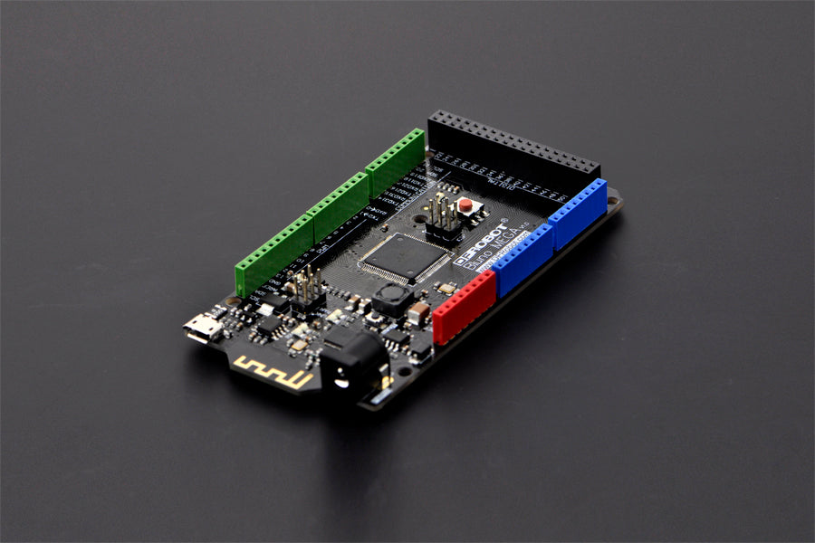 Like Arduino Mega, BLUNO MEGA is a high-end serie of the BLUNO product line. This BLUNO MEGA 1280 is based on ATmega1280 SoC, with 54 digital I/O (input/output) ports (of which 14 can be used as PWM output), 16 analog input ports and 4 UART (hardware serial ports), and uses a 16 MHz crystal oscillator. So, if you are feeling inadequate ports, desire more RAMs, flash memory or EEPROM, here is the answer.