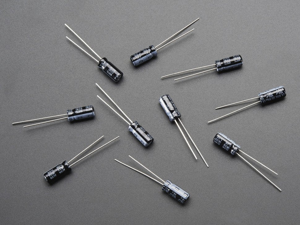 We use these capacitors in our own kits and they're great quality. They're so useful we're selling them in packs of 10. Each has nice clear labelling on the body as well in case you have a capacitor mix up.