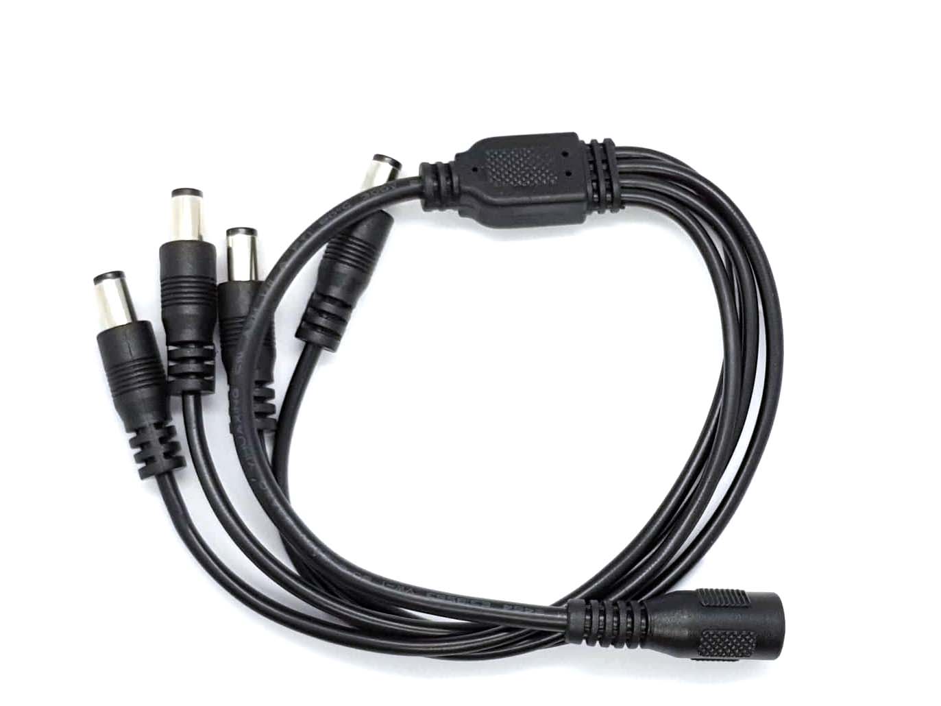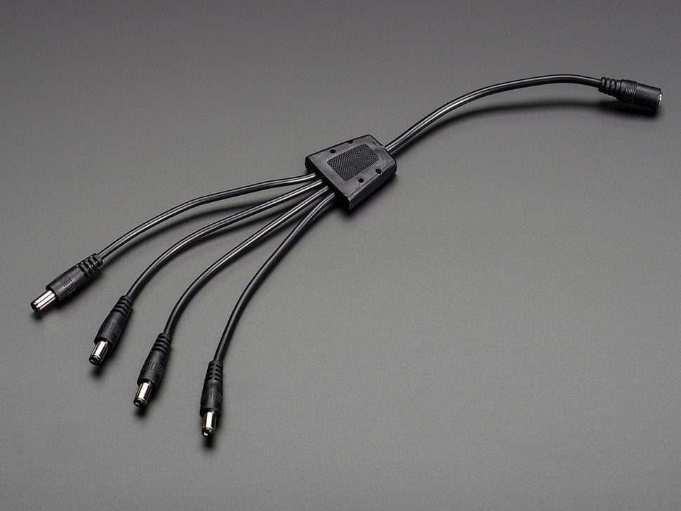 DC Barrel Jack 4 Way 2.1mm Splitter. Quadruple your power adapters with this wonderfully simple 4-way power jack splitter. All you have to do is connect a standard 5.5mm/2.1mm sized plug into one end, and behold, four identical plugs to use! We like the rugged molding on these adapters, and they're really handy when you have a project with multiple pluggable devices.