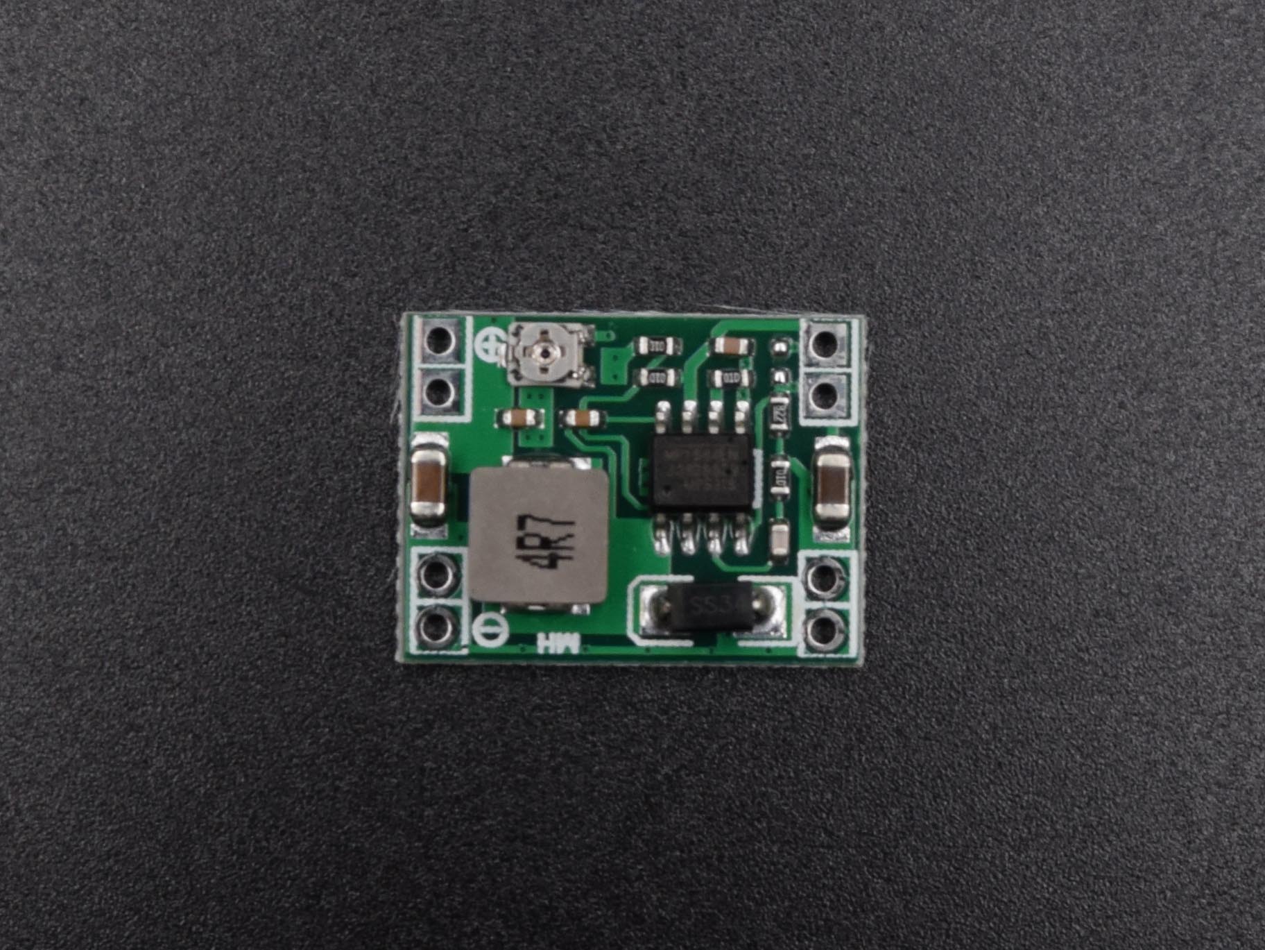 If you're looking for a high-quality adjustable DC-DC buck converter, this item is for you. This DC-DC Adjustable Step-Down Converter is based on the MP1584 chip, which converts voltages from a range of 4.5V - 28V to a lower rating of 0.8V - 18V.