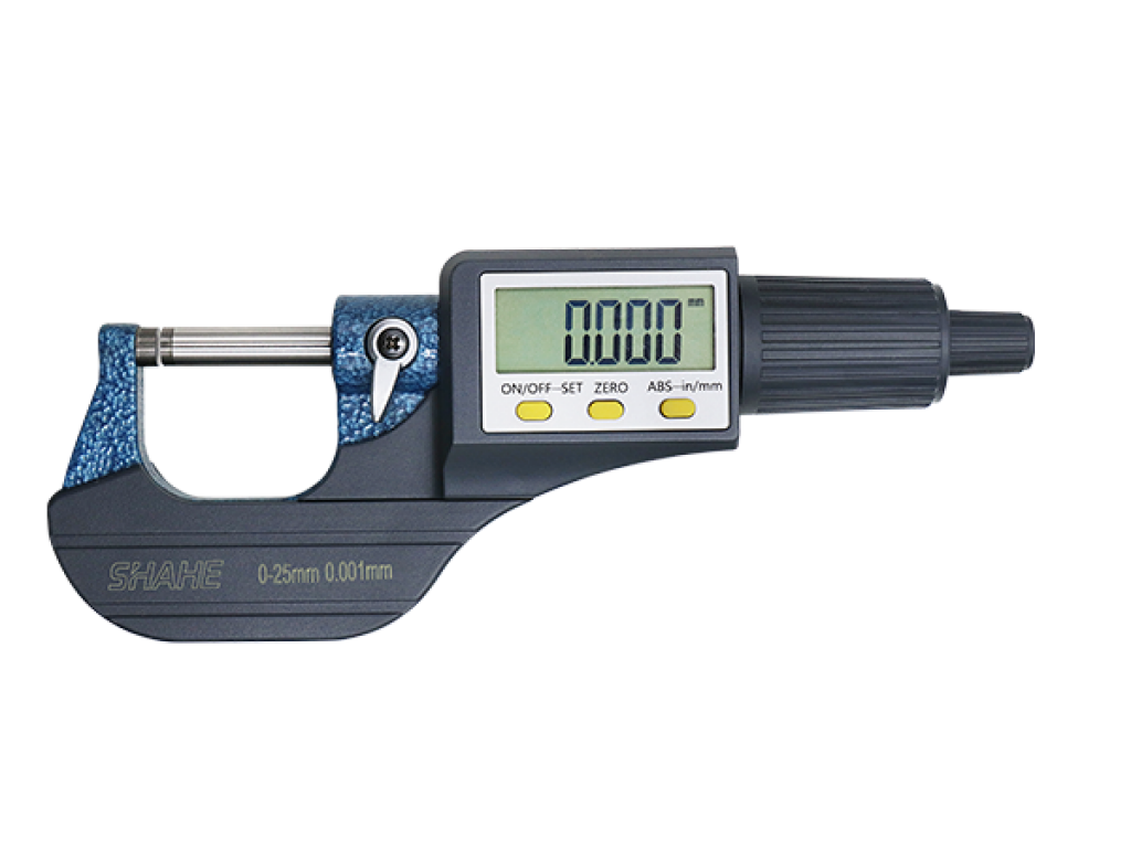 This micrometer can measure from 0 to 25mm or 0 to 1 inch. It has a resolution of 0.00005"/0.001mm with +- 0.00005" measurement accuracy. It also has an LCD screen that displays the measurement, in inches or millimeters.
