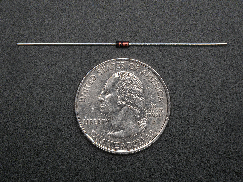 It is a 1N4148 diode, a standard silicon switching device. It is enclosed with sealed glass with a stud on each side that provides stability. It has a maximum current carrying capacity of 300mA and can withstand a current peaking at 2A. It can
