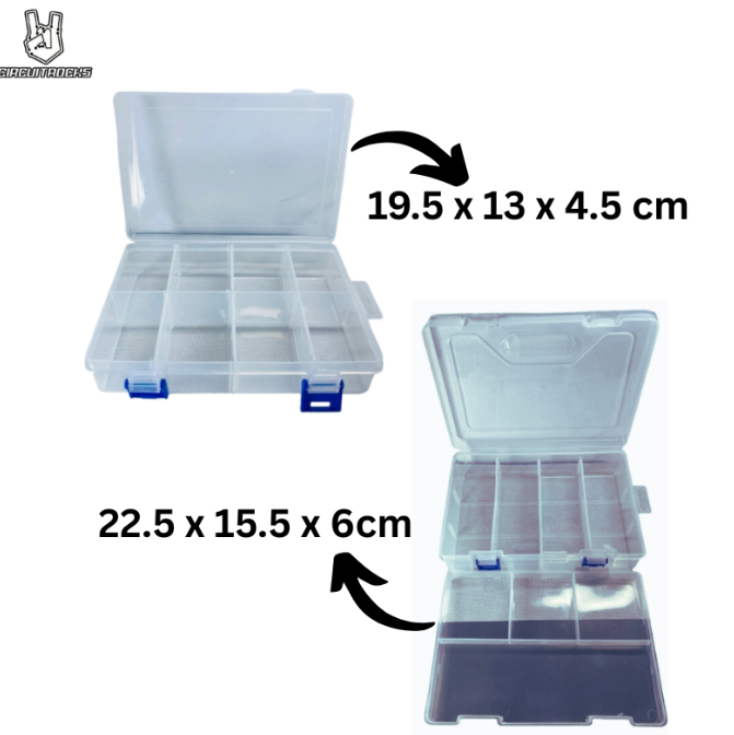 Storing your components in carton boxes shipping boxes is a fine way to keep organized. Well, now you'll always be organized with this transparent plastic Multi-Part Storage Box! We love this simple little box and it's our preferred way of storing larger-than-SMT-but-smaller-than-Arduino components.
