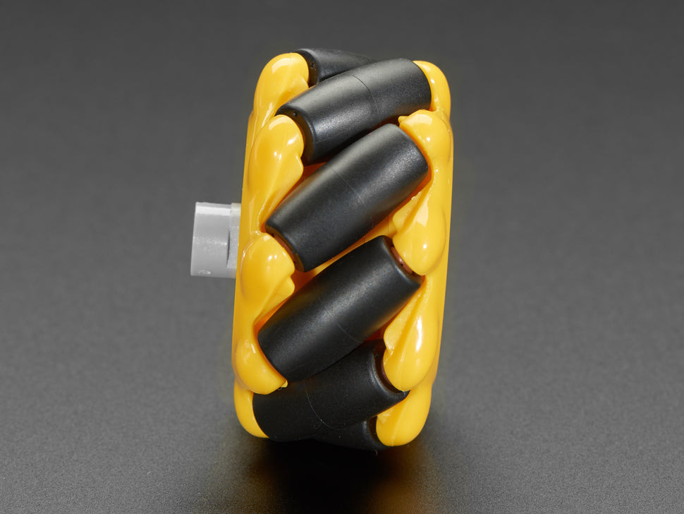 If you're unfamiliar with mecanum wheels, this Matching Left & Right pack of 48mm Diameter Mecanum Wheels may resemble everyday chunky wheels Frankenstein'd out of mini hair curler rollers. In reality, they are very cool, omnidirectional wheels with rollers that are supported by ball-bearings, allowing a four-wheeled robot to move in any direction. There are nine rubber beads around the perimeter of each wheel that lets it grip the floor when moving sideways.