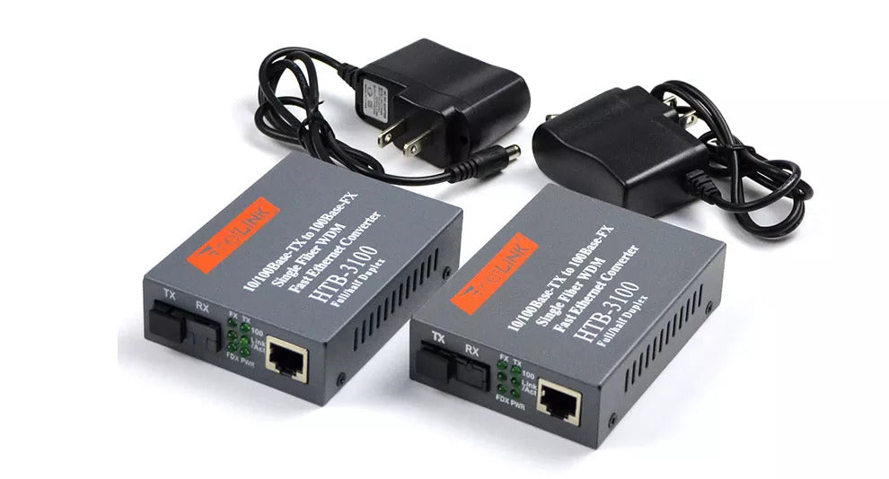 Media Converter HTB-3100 Fiber Optical Single Mode Single Fiber SC Port 20KM External Power Supply 10/100M