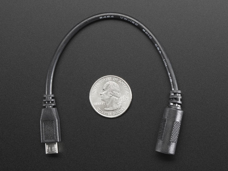 MicroUSB Plug to 5.5 / 2.1mm DC Barrel Jack Adapter. The premise of this MicroUSB Plug to 5.5/2.1mm Jack adapter is simple. There's a MicroUSB plug on one end and a 5.5mm/2.1mm DC barrel jack with center positive polarity on the other. This allows you to connect our 5V 2 Amp, adapters to something that expects to connect to 5V USB. We also have a shorty adapter-without-cable version
