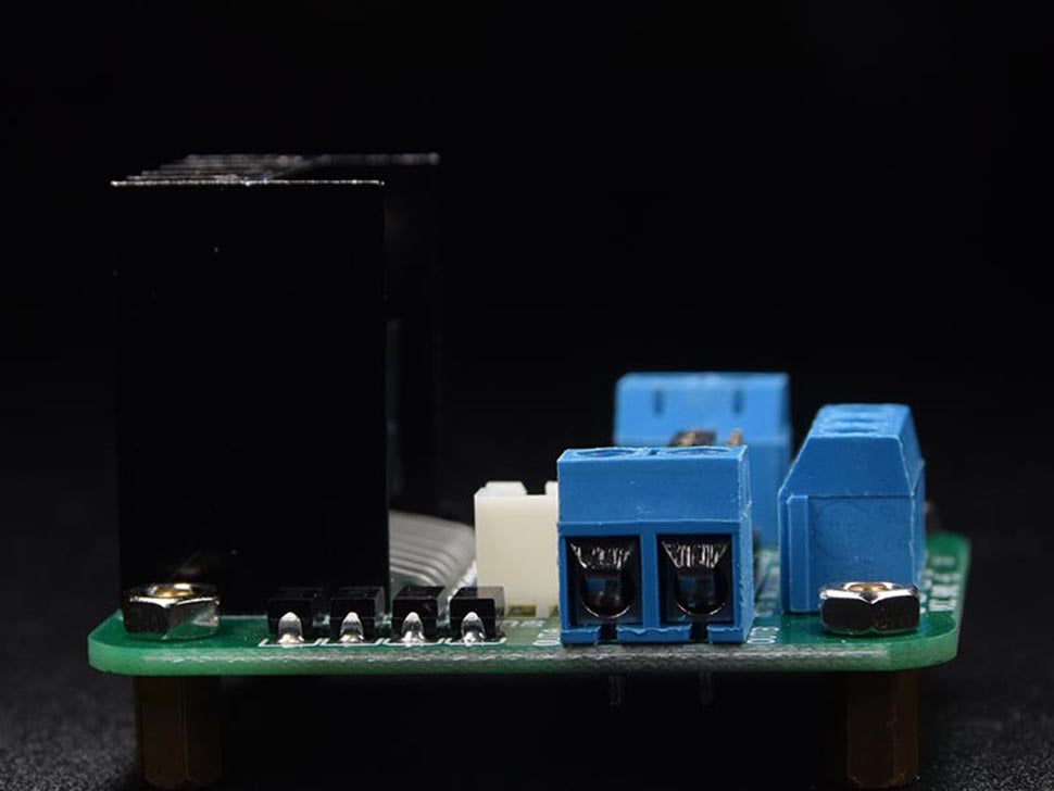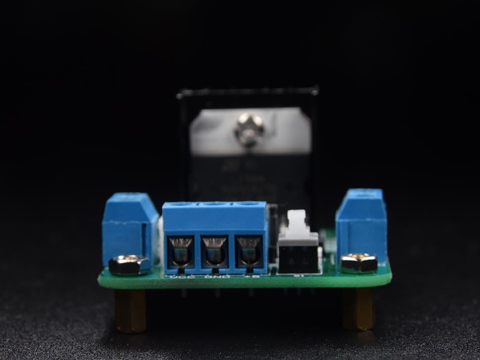 This module can accept 7V to 24V directly for the DC motor and 5V to power-up the module. It has 4 directional LED indicators, a power indicator, a self-locking switch to turn the module on and off. It also has a heatsink for regulating the heat produced by the module.