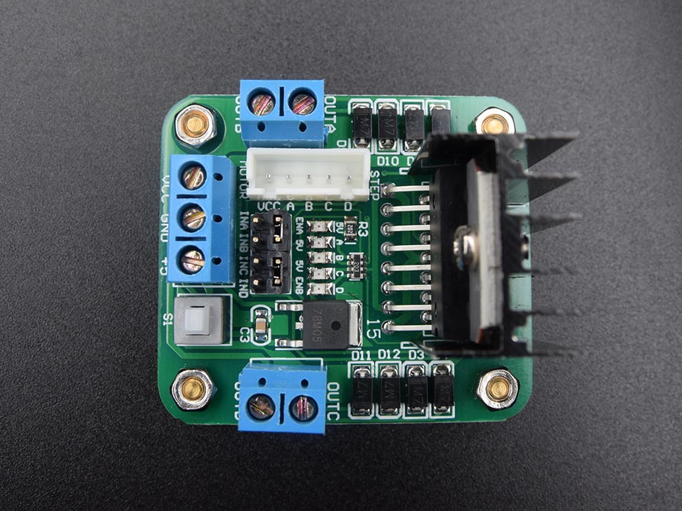 - Able to control two DC motors, a four-phase stepper motor, or a two-phase stepper motor