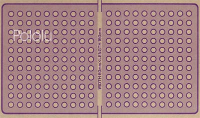 - 11 x 31 grid of 3 mm holes spaced 5 mm apart (60 x 160 mm, 2.36" x 6.30")