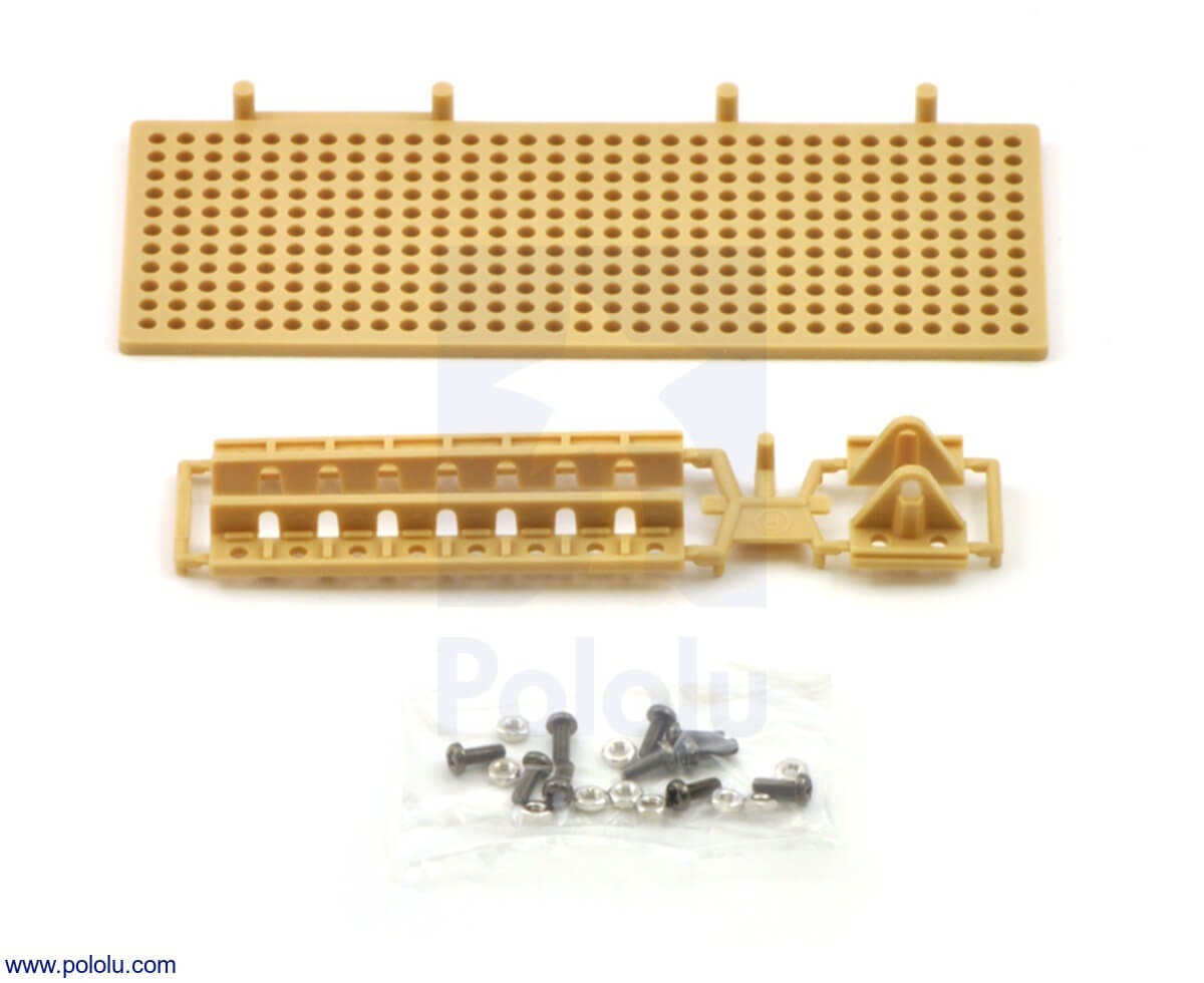 The base plate is 11 x 31 grid with 3mm holes spaced by 5mm apart. Which provides a lot of mechanical space. The eight-hole angle brackets can connect the plate to additional Universal Plates.