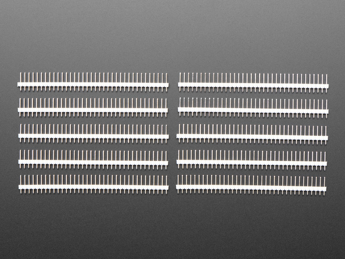 These 0.1" header strips are commonly used as low-cost Arduino connectors. The standard spacing allows use with solderless breadboards, perforated prototyping PCBs, and female headers such as those used on our Romeo robot controllers. These header strips can easily be snapped into smaller strips to fit your application.