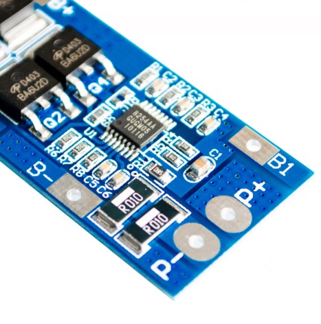 There are 6 solder pads that you could connect to, two of which are for charging/discharging (+/-). 4 pads are for the battery (B1, B2, B+, B-). B1 connects to the middle part of the first series, in between the connected positive pole and negative pole of the battery. B2 connects to the second series. B+ connects to the positive pole ending of the battery series, and B- connects to the available negative pole ending of the battery series.