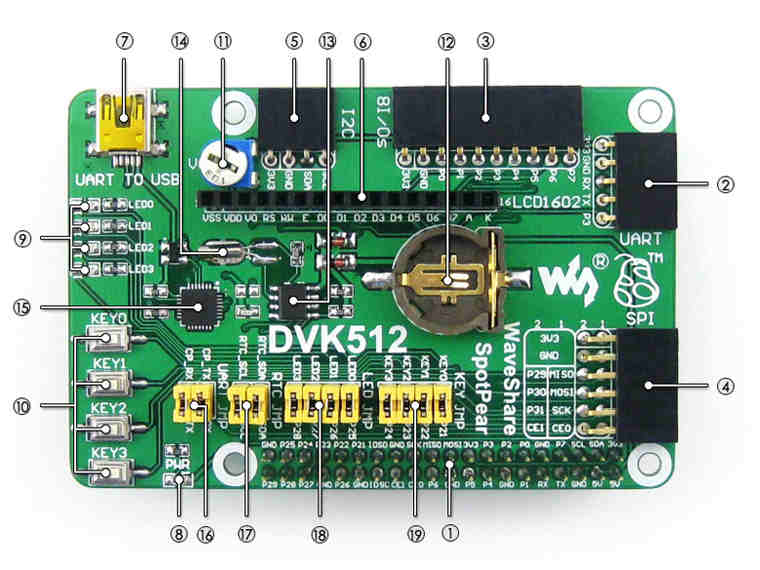 - 11, Potentiometer: for LCD1602 contrast adjustment