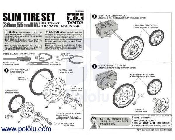 - Two tires: 55 mm diameter, 3.5 mm wide